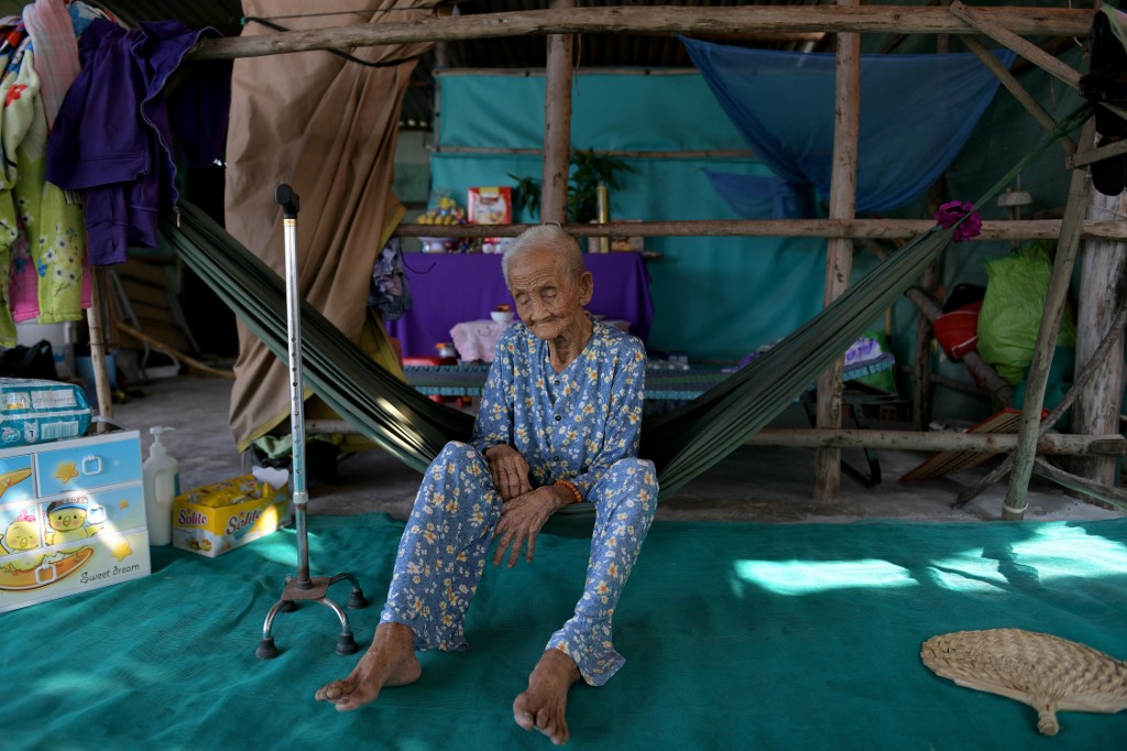“My house is here, my land is here, so I will be buried here,” she tells AFP, sitting on a small cot where she spends much of her time.