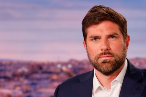 French Mayor of surburban city L’Hay-Les-Roses, Vincent Jeanbrun poses prior to an interview in the evening news broadcast of French TV channel TF1, in the TF1 studios in Boulogne-Billancourt, outside Paris, on July 2, 2023. – The attack, which injured the Mayor’s wife and one of his children, occured in a fifth night of rioting sparked by the police killing of a 17-year-old, as police deployed reinforcements to flashpoint cities around the country. Prime Minister called the attack “intolerable”, while prosecutors said they were treating it as attempted murder. (Photo by Ludovic MARIN / AFP)