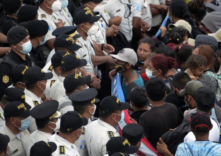 Security forces surrounded the migrant caravan on a road in the southeastern Guatemalan town of Vado Hondo, near the border with Honduras.