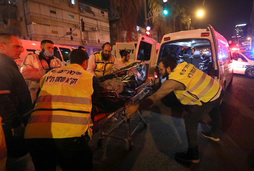 BNEI BRAK, Israel (AFP) — Five people were killed in gun attacks Tuesday near the Israeli coastal city of Tel Aviv, emergency responders said, in the third fatal gun or knife spree in the Jewish state in a week.