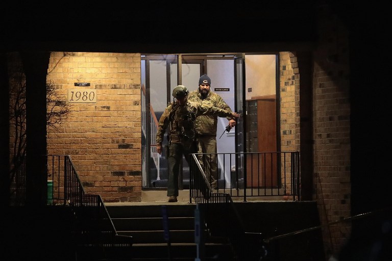 Aerial TV footage showed dozens of police cars, ambulances and fire trucks at the scene as officers with shields entered the complex.
