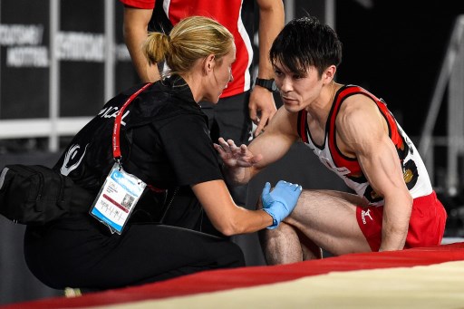 Uchimura was later seen on crutches as he gave support to his Japan team-mates.