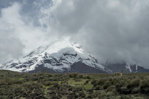 A vicuna roams at the foothill of the Chimborazo volcano, Ecuador’s central Andes, on February 18, 2019. The Chimborazo and the Carihuairazo are two of the seven elevations that are losing their glacier coverage in Ecuador mainly due to the deforestation of the moorlands and burning of fossil fuels. (Photo by Pablo Cozzaglio / AFP)