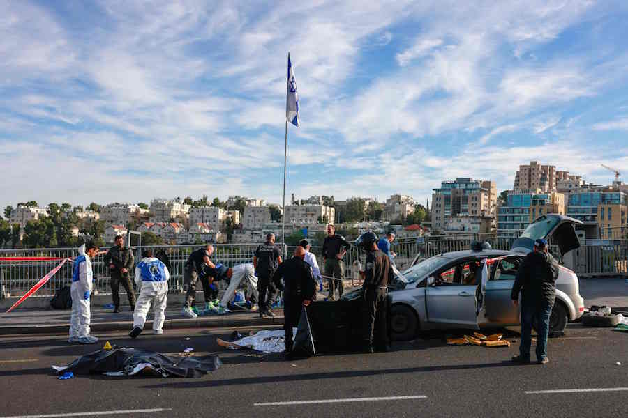 “Two terrorists arrived in a car, one of them armed with an M-16 and the other with a pistol,” and opened fire, Jerusalem police chief Doron Torgeman told reporters at the scene.