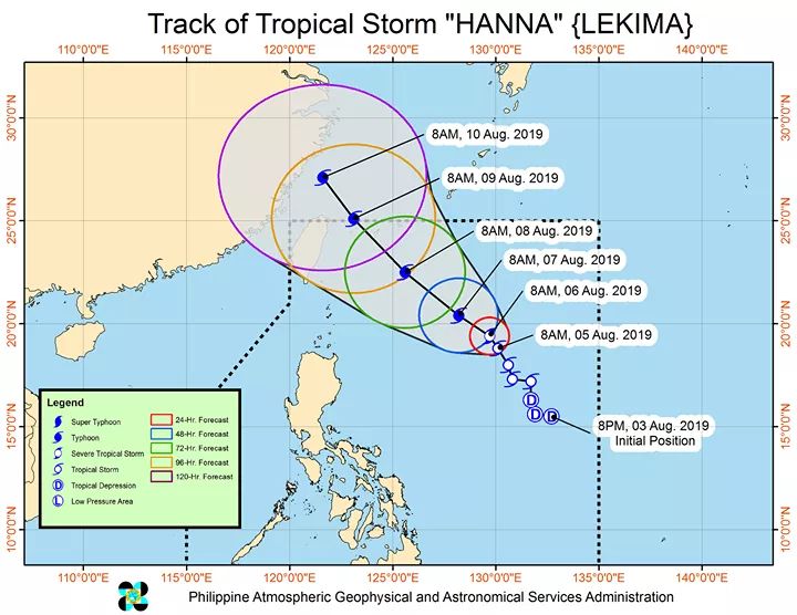 “Hanna” is packing maximum sustained winds of up to 85 kilometers per hour near the center and gustiness of up to 105 kph, and is moving at 15 kph.
