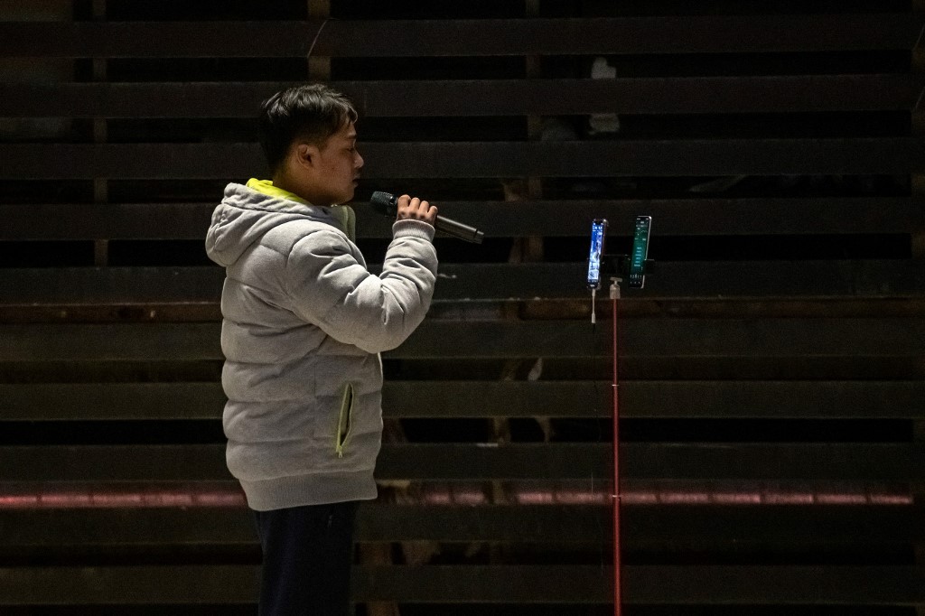 On another occasion, he rigged up a microphone and small speaker and sang for about 40 minutes, before his mobile phone ran out of data.