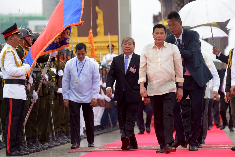 Duterte is on a two-day state visit to Cambodia. / AFP PHOTO / TANG CHHIN Sothy