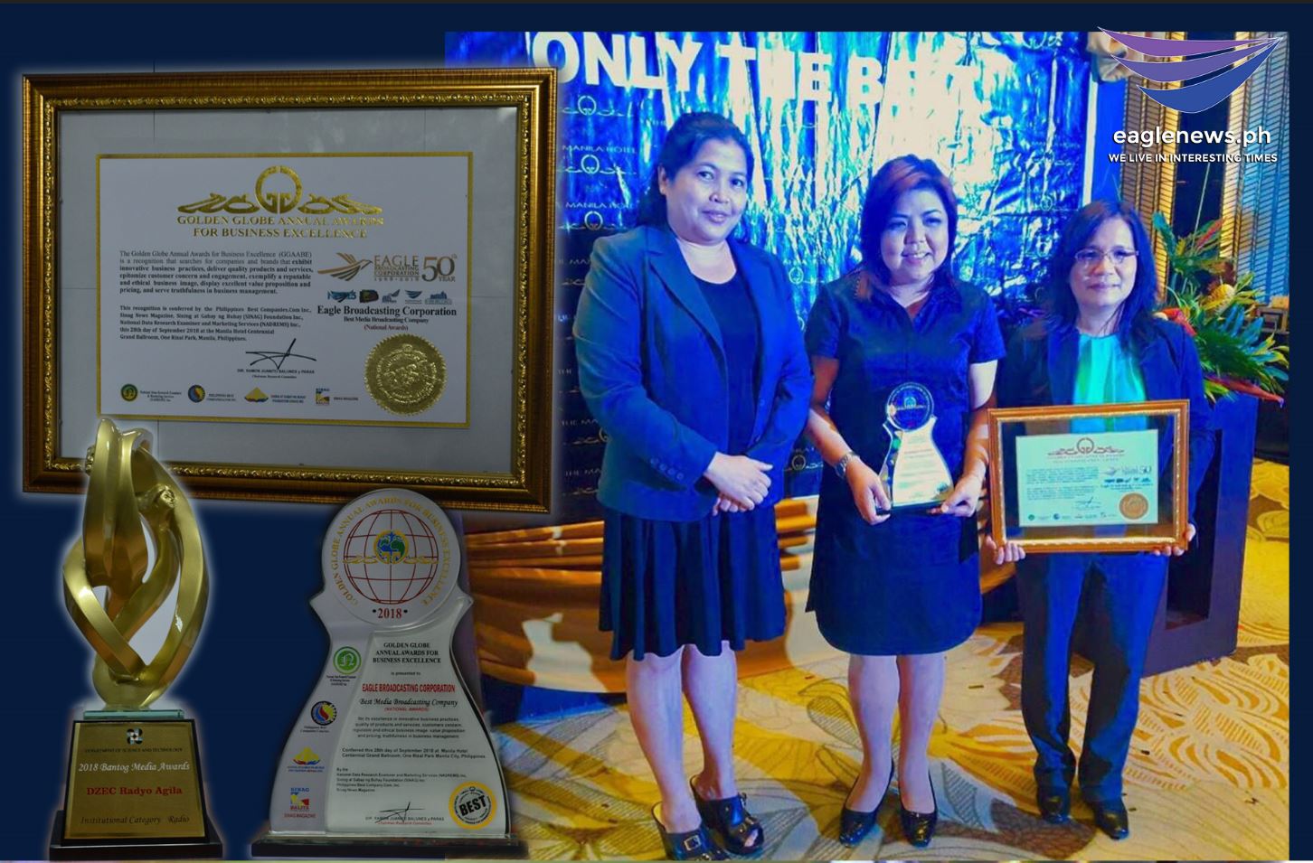 (Eagle News) — Eagle Broadcasting Corporation was named as “Best Media Broadcasting Company” for 2018 by the Golden Globe Annual Awards for Business Excellence on Friday, Sept. 28, citing its excellence in innovative business practices and reputable ethical image.