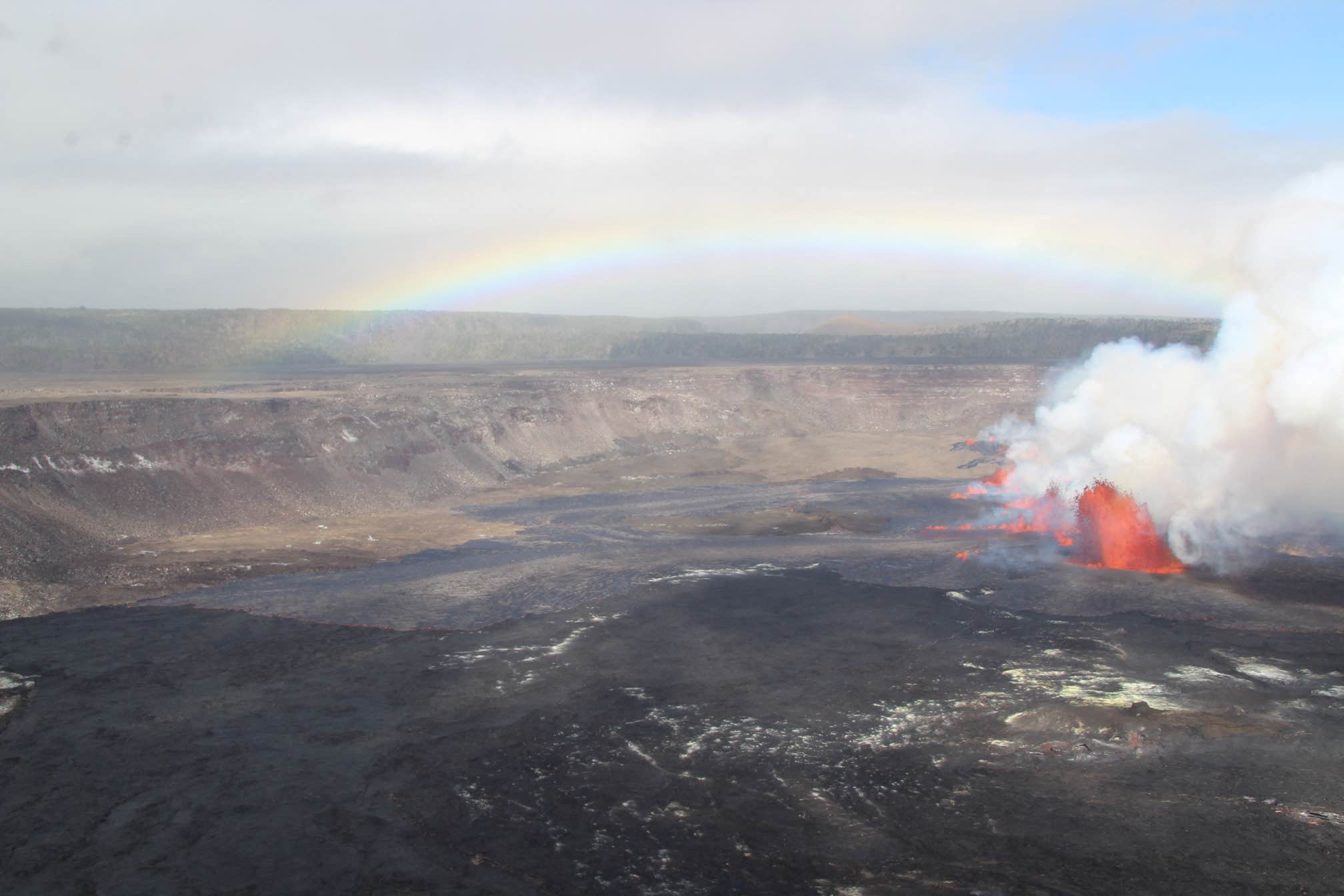 A USGS livestream from the rim of the caldera showed fountains of lava erupting from multiple fissures in the crater.
