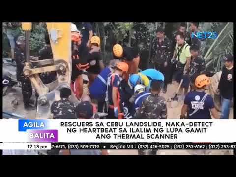 Gamit ang thermal scanner nakadetect ang mga rescuer ng heartbeat sa ilalim ng gumuhong lupa sa Barangay Tinaan, lungsod ng Naga, Cebu.