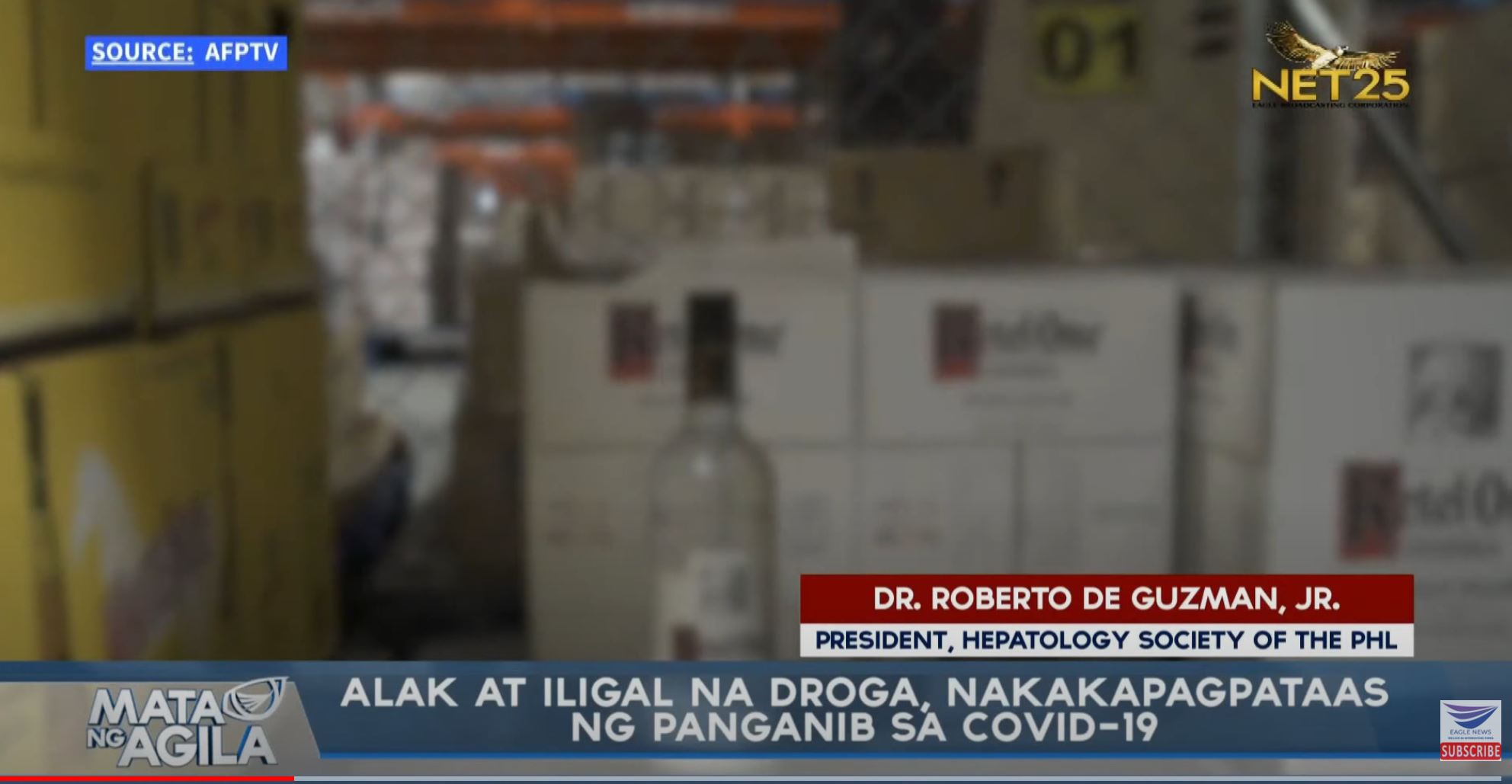 (Eagle News) — The president of the Hepatology Society of the Philippines (HSP) warned the public on the ills of drinking alcohol amid renewed lockdown measures in the country, saying that alcohol consumption could lead to Filipinos getting more severe COVID-19 infection.