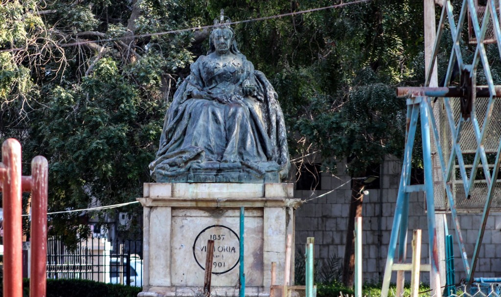 A picture shows a statue of Britain’s Queen Victoria at a park in the southern Yemeni city of Aden, on March 3, 2022. – Yemen’s brutal war has not just killed hundreds of thousands but also laid waste to much of its rich architectural heritage, from its iconic mud brick towers to mosques, churches, museums and military bastions, damaging many important archaeological sites and tourist landmarks, while artefacts have been looted and smuggled abroad. (Photo by Saleh Al-OBEIDI / AFP)