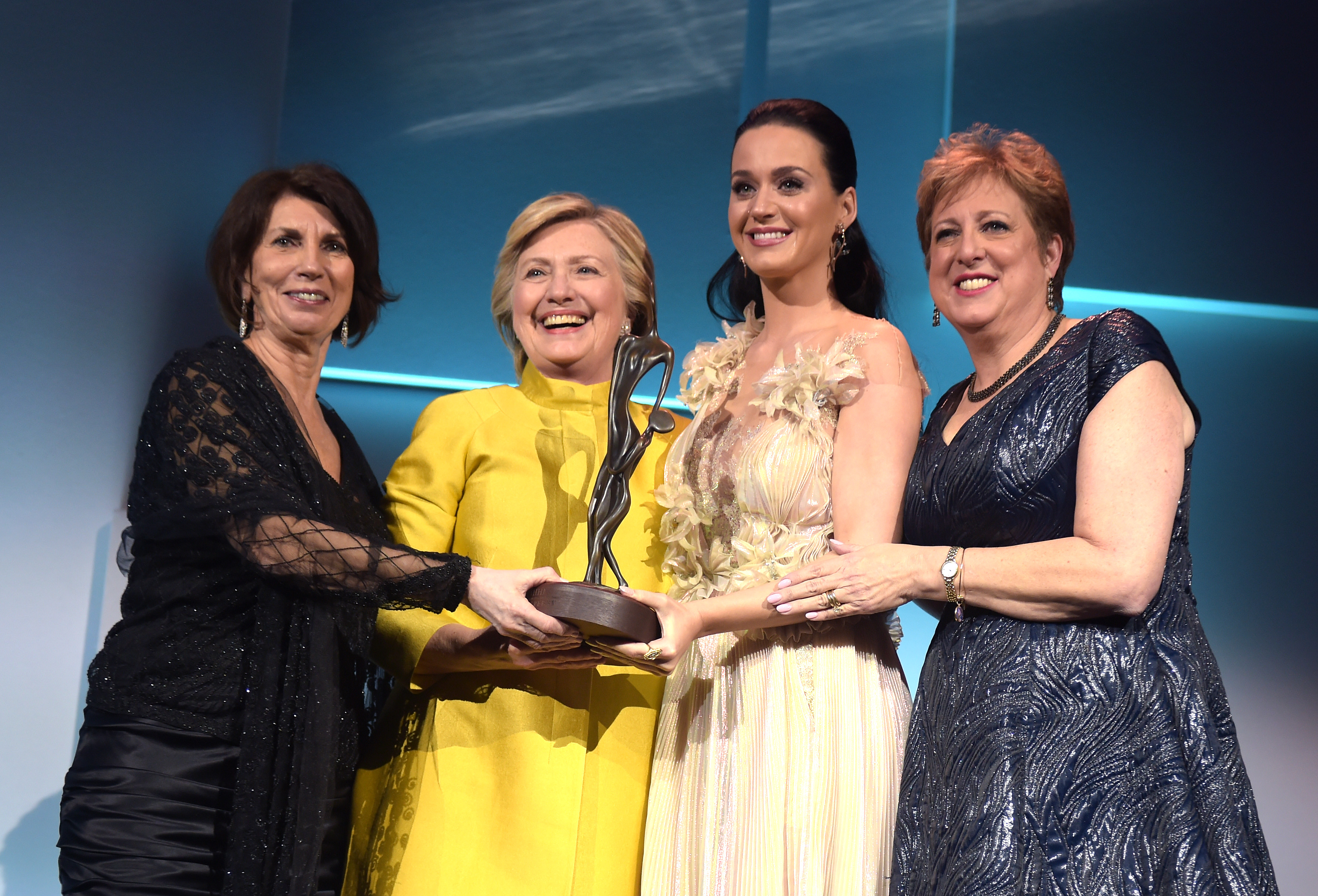 NEW YORK, United States (AFP) — Hillary Clinton surprised a New York gala with an unscheduled appearance to promote UNICEF and honor singer Katy Perry, one of the top celebrity supporters of her ill-fated presidential campaign.