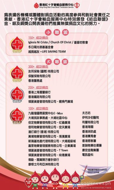 (Eagle News) – The Hong Kong Red Cross has given recognition to the Iglesia Ni Cristo (Church Of Christ) for its recent blood donation drive in Hong Kong that helped its campaign to save lives.