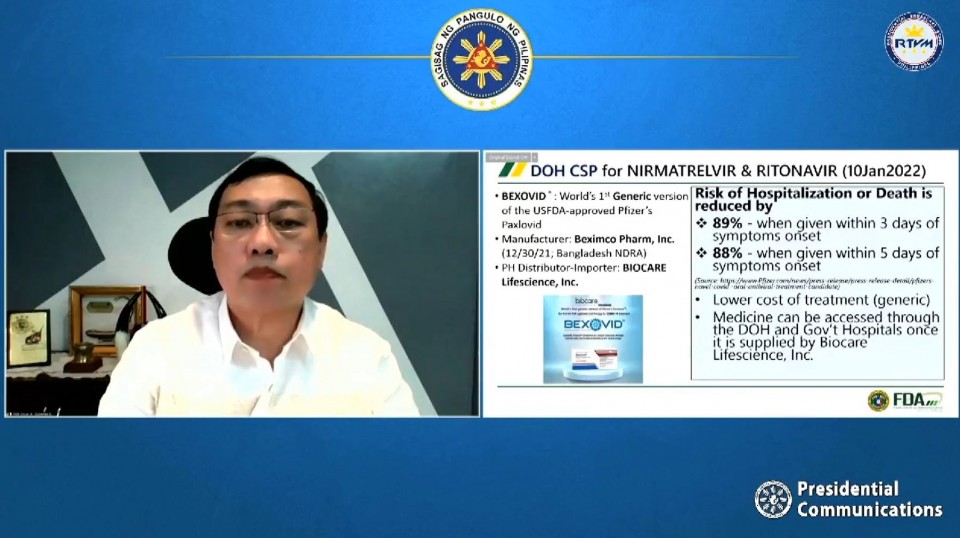 On Monday, January 10, Philippine FDA OIC Director General Oscar Gutierrez Jr., announced the approval of the compassionate special permit for Bexovid.