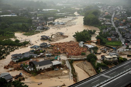 TOKYO, Japan (AFP) — At least two people have been killed and 18 others are missing in huge floods that are surging through southern Japan, with authorities warning hundreds of thousands of people to flee.