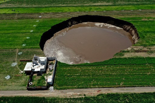 PUEBLA, Mexico (AFP) — A giant sinkhole that was expanding by dozens of meters each day has alarmed residents in a rural area of central Mexico where it was threatening to swallow a house.