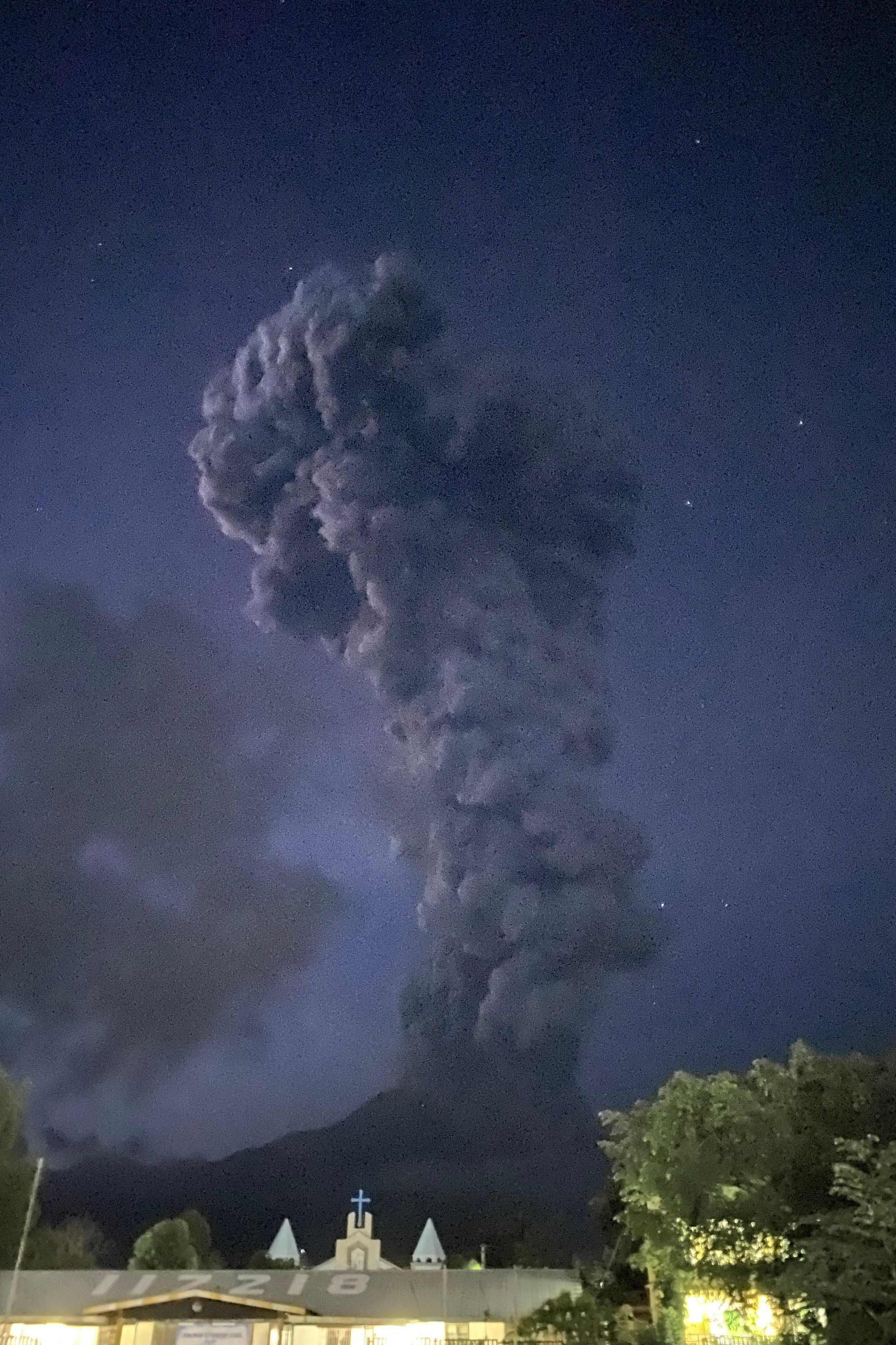 Mount Kanlaon on Negros island exploded for six minutes on Monday night, sending a plume of ash, rocks and gases five kilometres (three miles) into the sky.