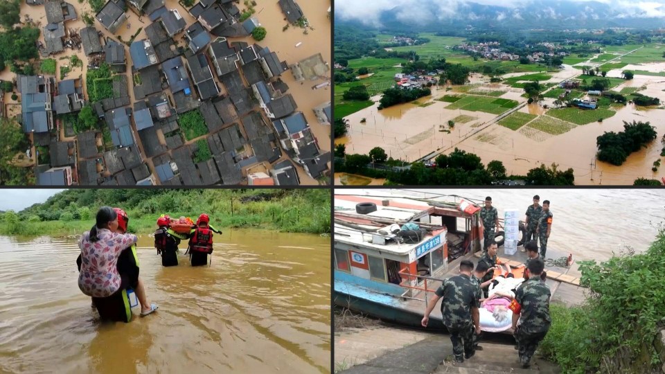 In neighbouring Guangxi region, muddy water was seen flooding urban areas and emergency rescuers were seen evacuating villagers on rubber dinghies, according to state media images.
