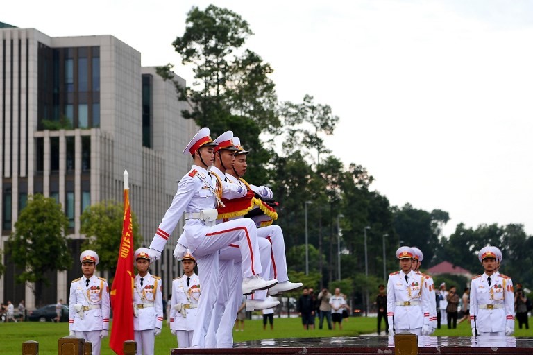 The country’s top party cadres led tributes with large red, yellow and white floral wreaths, including Prime Minister Nguyen Xuan Phuc and Communist Party chief Nguyen Phu Trong, who lit incense and bowed their heads before the coffin.