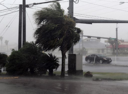 Hurricane Harvey will soon hit the Texas coast with forecasters saying its possible for up to 3 feet of rain and 125 mph winds. / AFP PHOTO / MARK RALSTON
