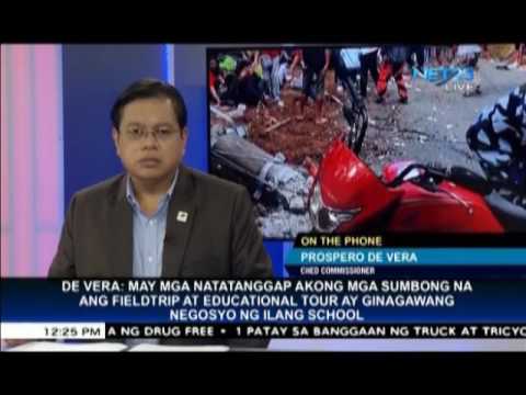 QUEZON City, Philippines (Eagle News) — In an interview with Commission on Higher Education Commissioner Prospero De Vera, he discussed the CHED’s moratorium on field trips in the light of the bus tragedy which resulted in the death of 15 students of BestLink Colleges in Tanay, Rizal last Monday.