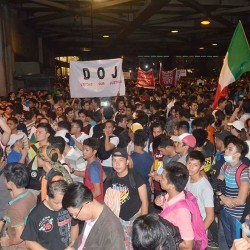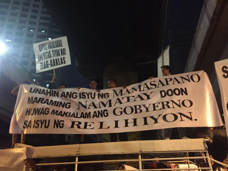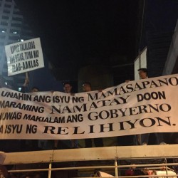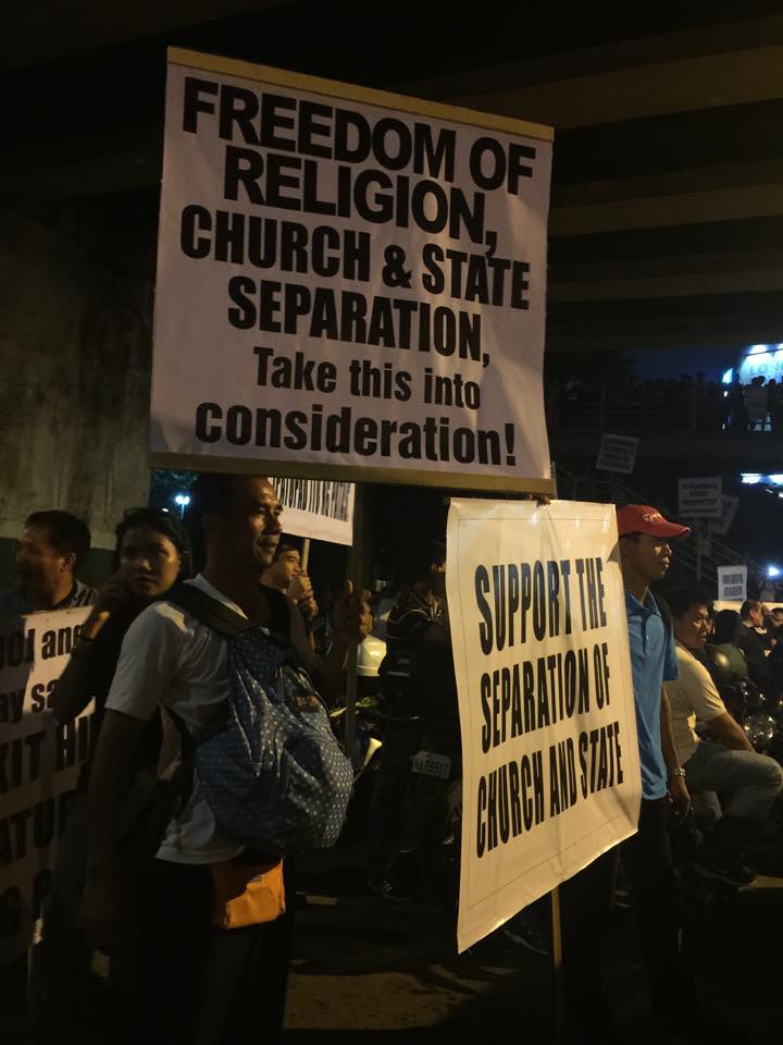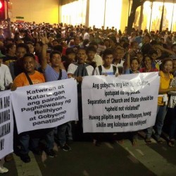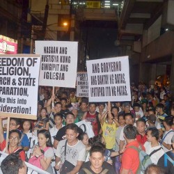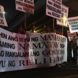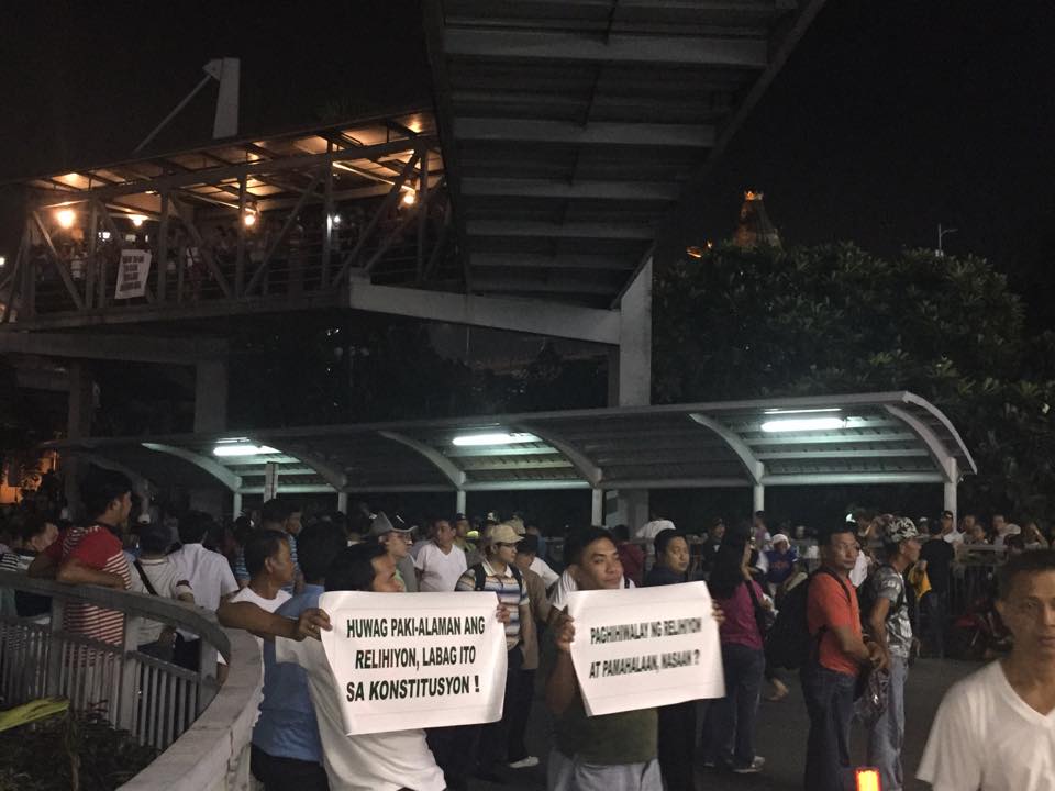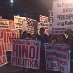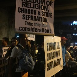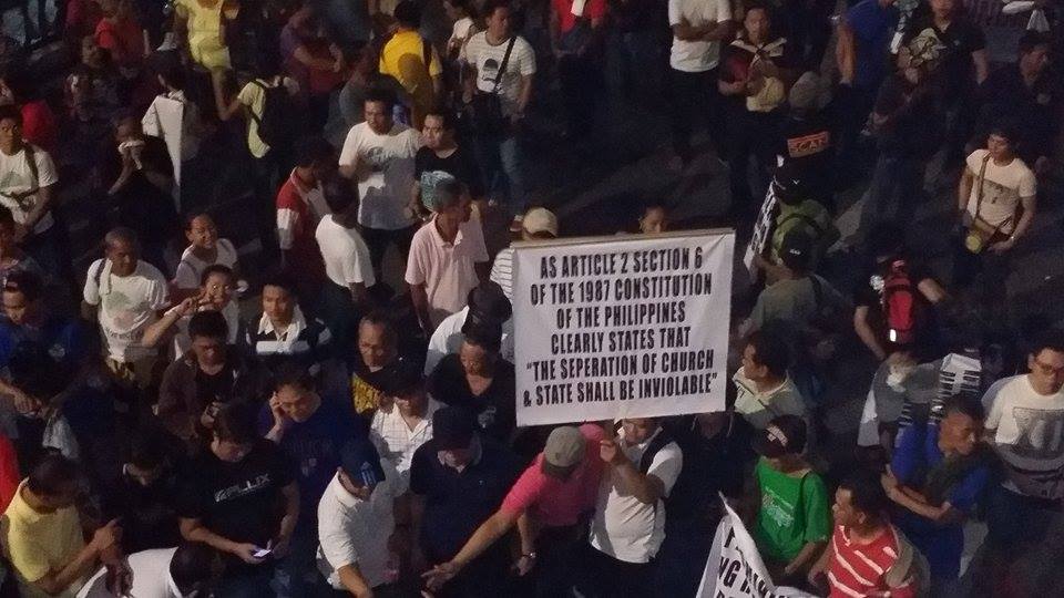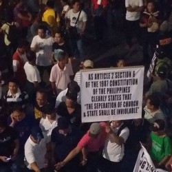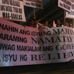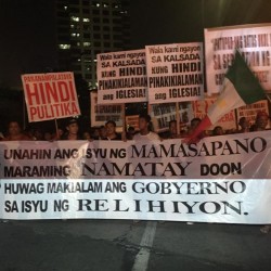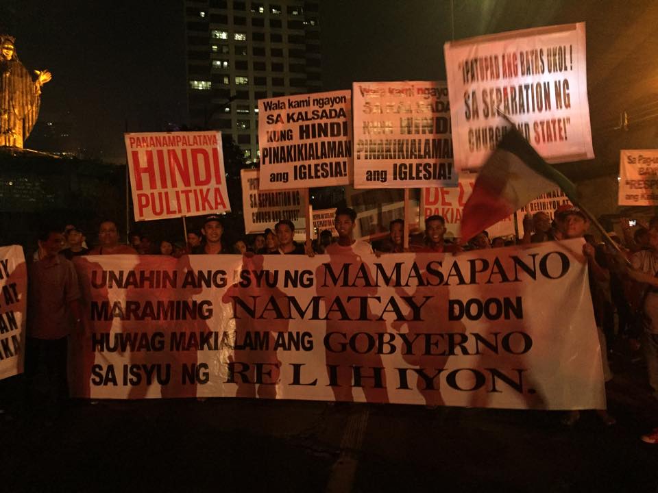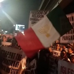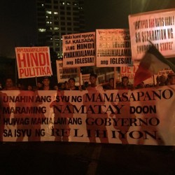 Members of the Iglesia Ni Cristo wave numerous signs and placards signifying their message and grievances as they continue their activity with passion, without any sign of tiredness.