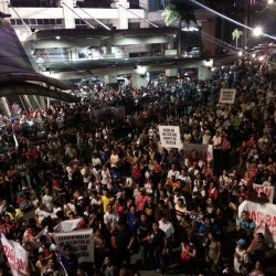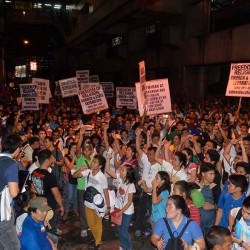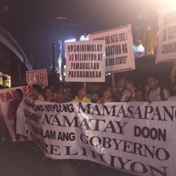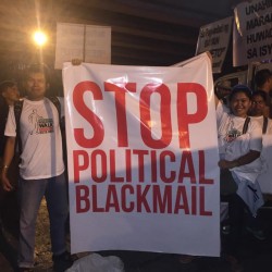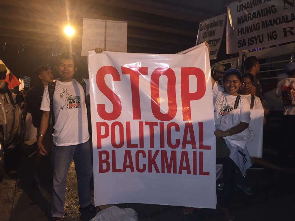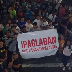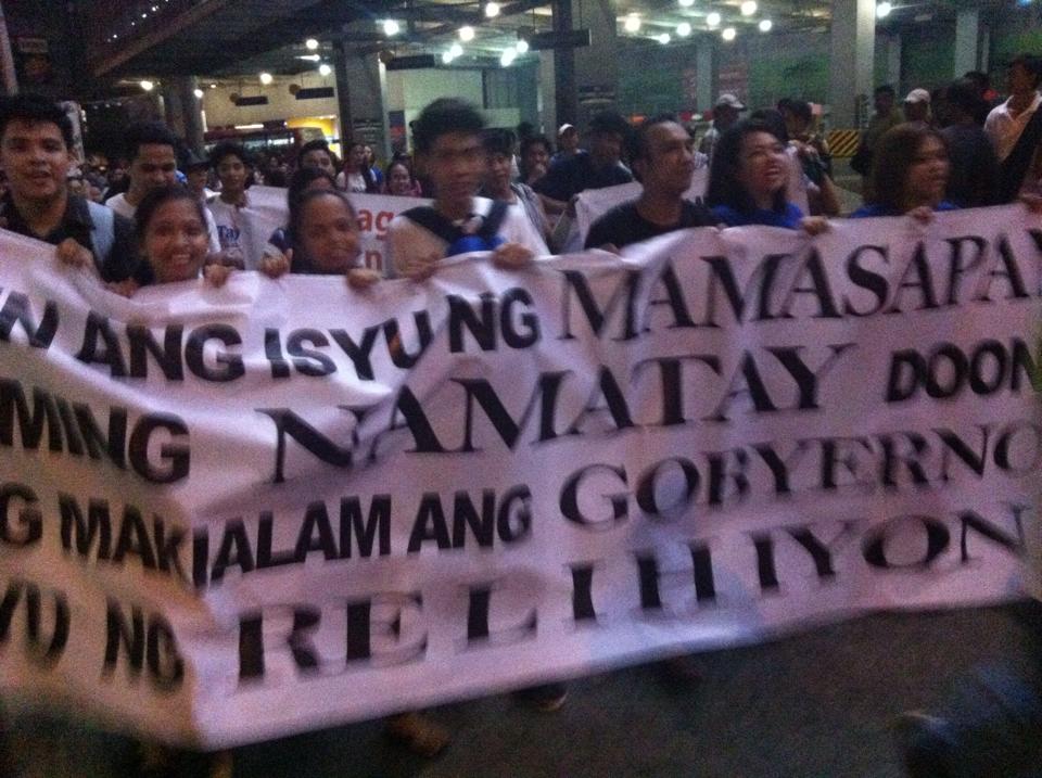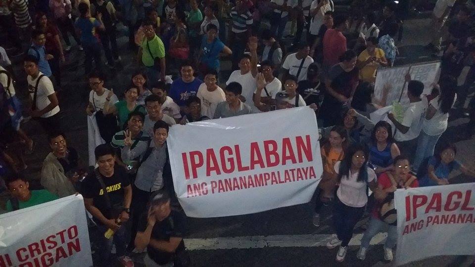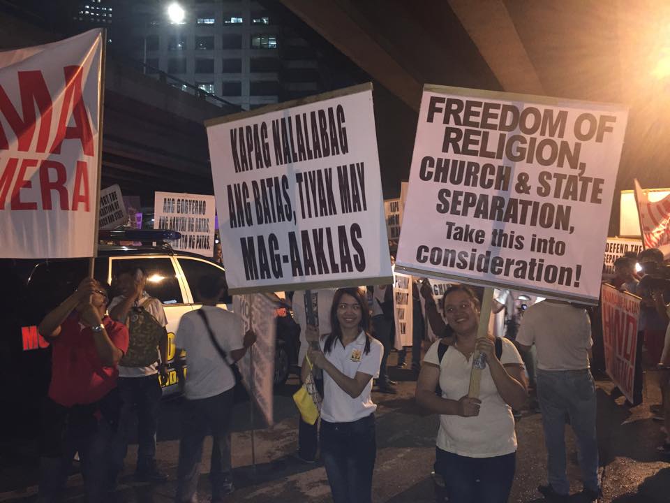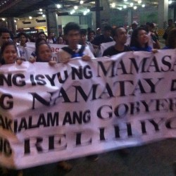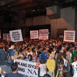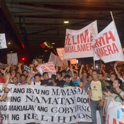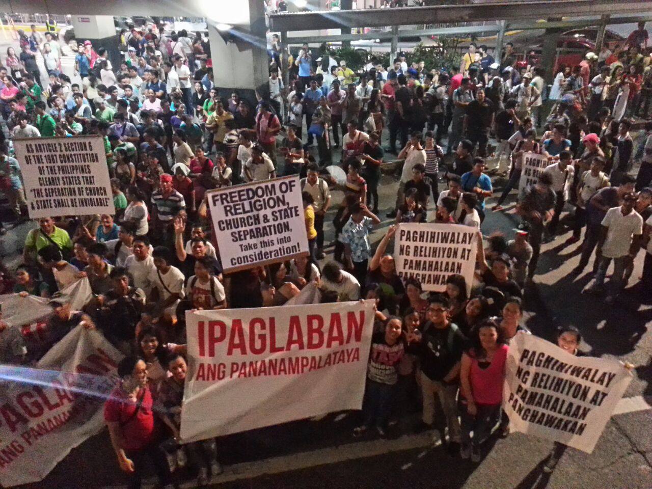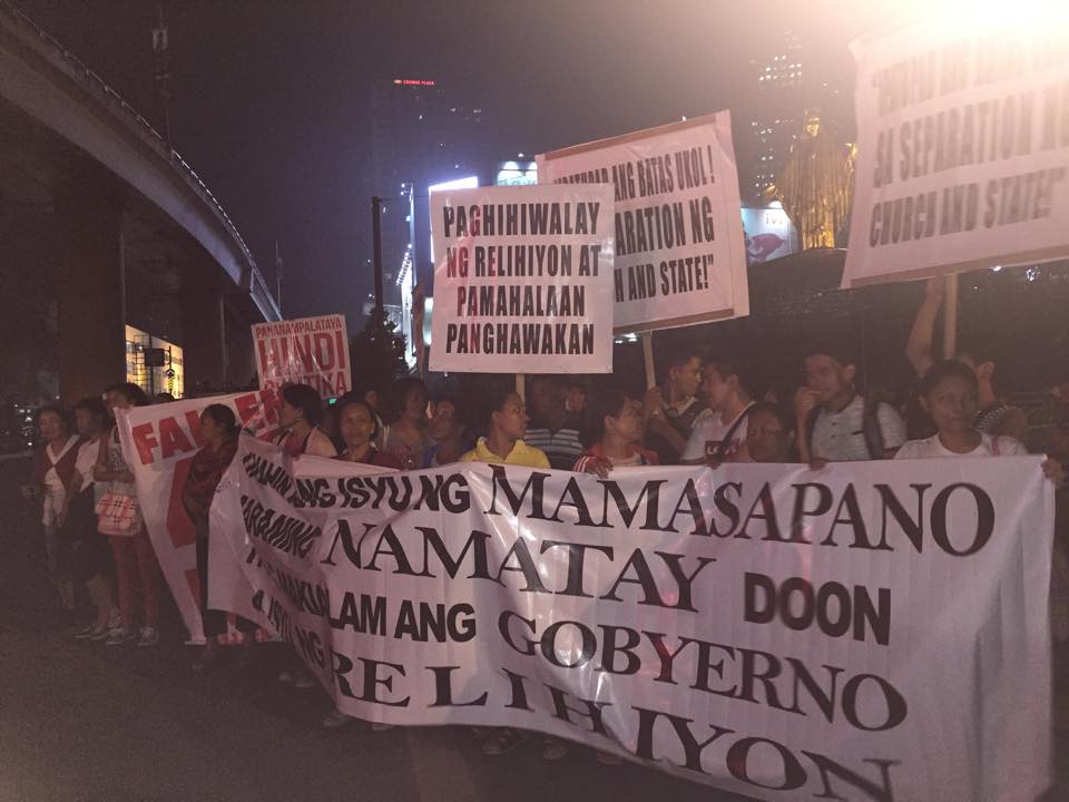 Members of the Iglesia Ni Cristo wave numerous signs and placards signifying their message and grievances as they continue their activity with passion, without any sign of tiredness.