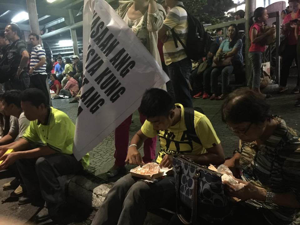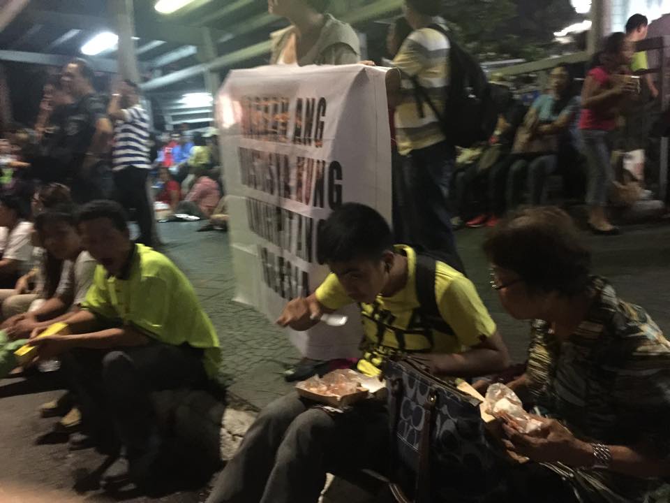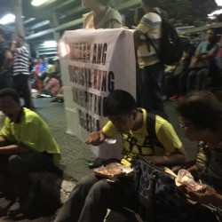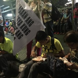 Some Iglesia Ni Cristo members take a break as they partake dinner on the roadside. Said dinner are shared for free by the brethren, another show of unity and solidarity of the church.