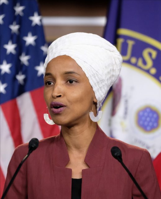 U.S. Rep. Ilhan Omar (D-MN) speaks during a press conference at the U.S. Capitol on July 15, 2019 in Washington, D.C. President Donald Trump stepped up his attacks on four progressive Democratic congresswomen, saying if they’re not happy in the United States “they can leave.” Alex Wroblewski/Getty Images/AFP