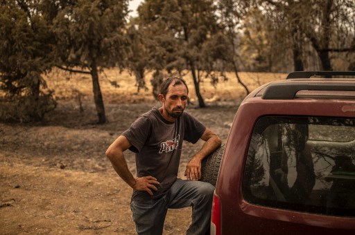 Up there, in the middle of the forest, the 44-year-old farmer survived miraculously by spending hours under an irrigation water pipe, surrounded by flames.