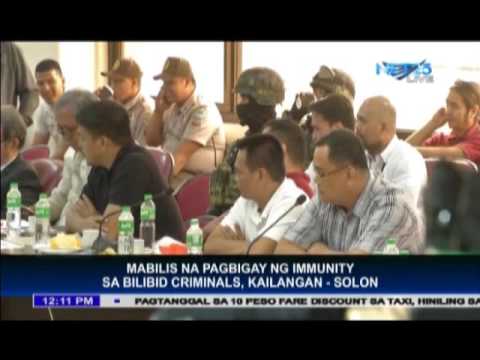 According to Deputy House Speaker Fredenil Castro, there is an urgent need to give immunity to the convicted Bilibid inmates in order for the hearing to proceed. The hearing will not proceed without the immunity as the resource persons will not speak if their statements can be used against them in a court of law.