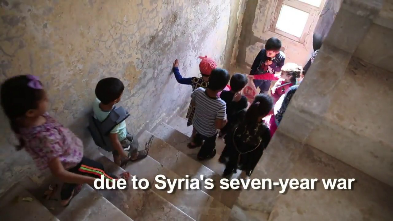 The children — as well as their teachers — have been displaced from their homes in other parts of Syria due to the seven-year war, a teacher told an AFP photographer.