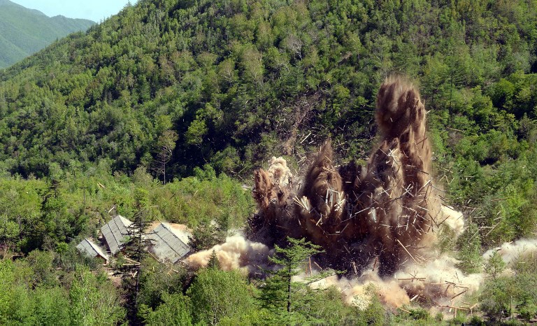 North Korea declared it had “completely” dismantled its nuclear test site, in a carefully choreographed move portrayed as a goodwill gesture as US President Donald Trump on May 25 called off his planned June summit with Kim Jong Un, blaming “open hostility” from the North Korean regime and warning Pyongyang against committing any “foolish or reckless acts.” / AFP PHOTO / KCNA VIA KNS /