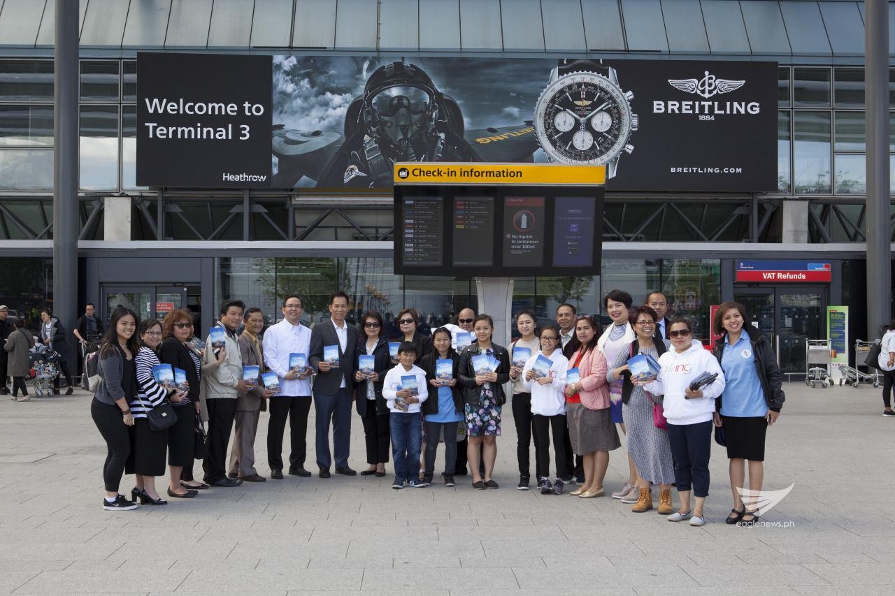 In Heathrow, London, INC members distribute pamphlets