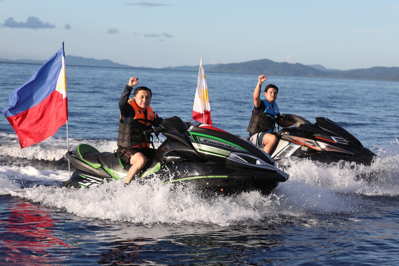 Special Assistant to the President Christopher Lawrence “Bong” Go and the youngest son of President Rodrigo Duterte, Sebastian “Baste” Duterte rode their jet ski as they took a tour around the Casiguran Sound during the Philippine Rise commemoration on May 15, 2018.