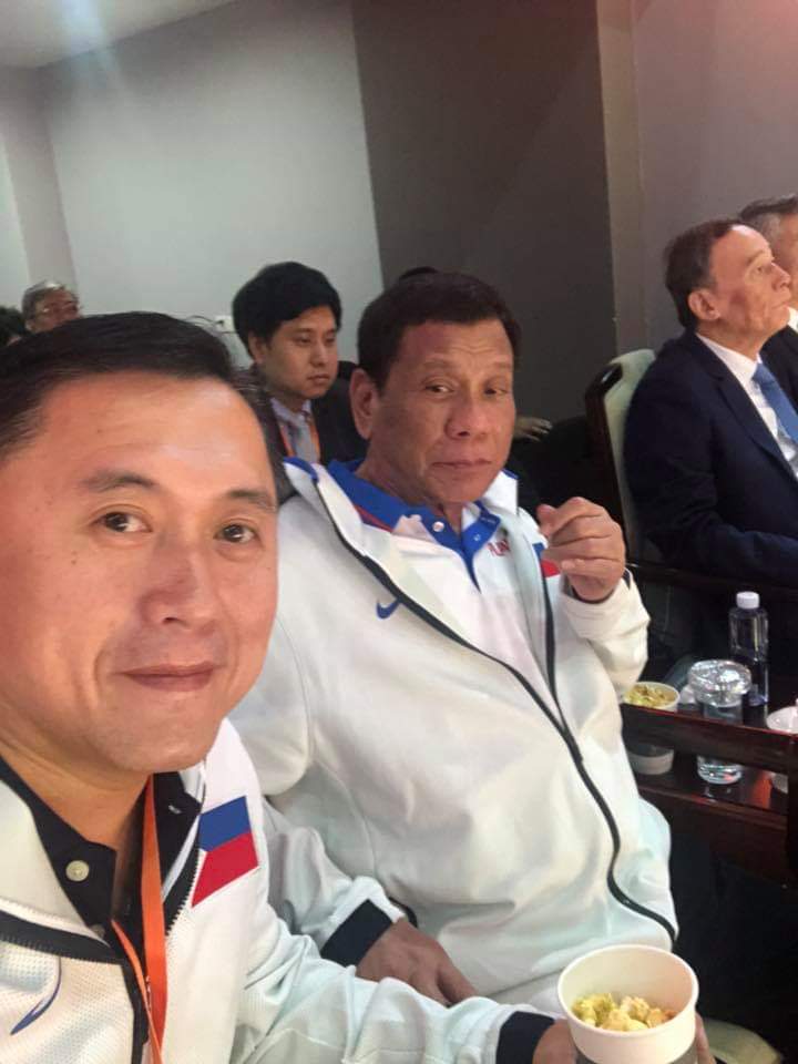 (Eagle News)–President Rodrigo Duterte and Senator Bong Go pose for a picture as they watch the Gilas Pilipinas’ basketball match against Italy.