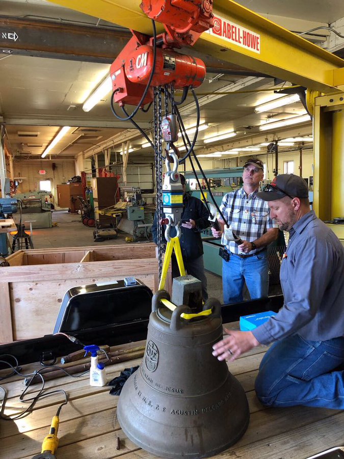 (Eagle News)—-In these pictures released by the US Embassy in Manila, the two Balangiga bells housed in Wyoming are being readied for transport to the Philippines.