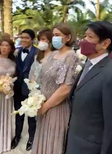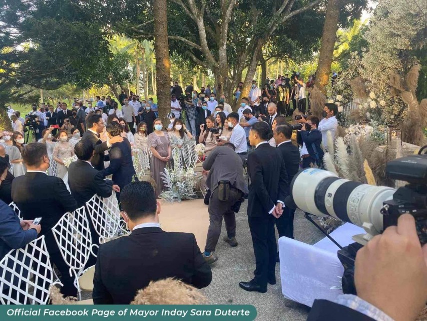Presidential aspirant Ferdinand “Bongbong” Marcos Jr., and Davao City mayor Sara Duterte during the wedding of Senator Bong Revilla’s daugher Gianna Revilla and partner Jed Patricio in Silang, Cavite on Nov. 11, 2021. (Photo courtesy official facebook page of Davao City Mayor Sara Duterte)Davao City Mayor Sara Duterte at the wedding of of Senator Bong Revilla’s daugher Gianna Revilla and Jed Patricio in Silang, Cavite on Nov. 11, 2021. (Photo courtesy official facebook page of Davao City Mayor Sara Duterte)Screenshot of Facebook Live post of Sen. Bong Revilla Jr. on Nov. 11, 2021 during the wedding of his daughter, Gianna Revilla. (Courtesy Facebook page of Sen. Bong Revilla Jr)Screenshot of Facebook Live post of Sen. Bong Revilla Jr. on Nov. 11, 2021 during the wedding of his daughter, Gianna Revilla. (Courtesy Facebook page of Sen. Bong Revilla Jr)