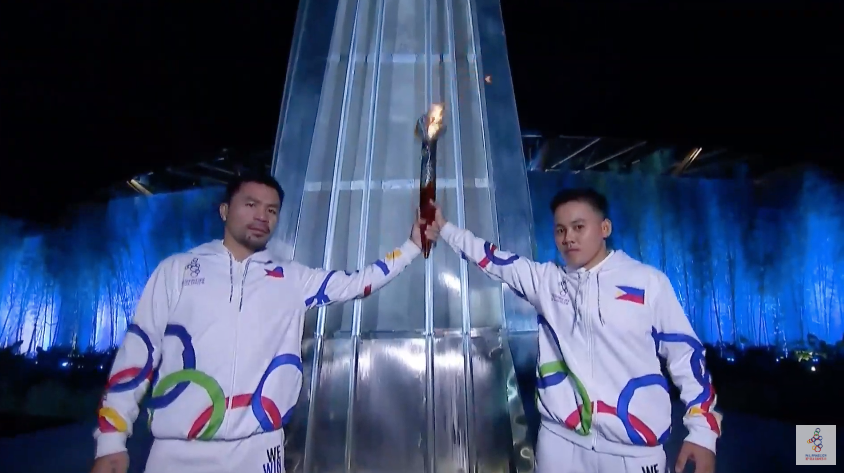 (Eagle News)–In these pictures, world boxing icon Manny Pacquiao and world women’s boxing champion Nesthy Petecio are seen carrying the Southeast Asian Games symbolic torch to light up the cauldron at the New Clark City in Tarlac.