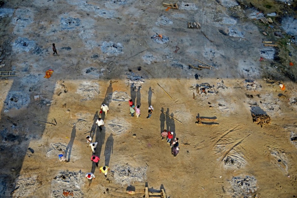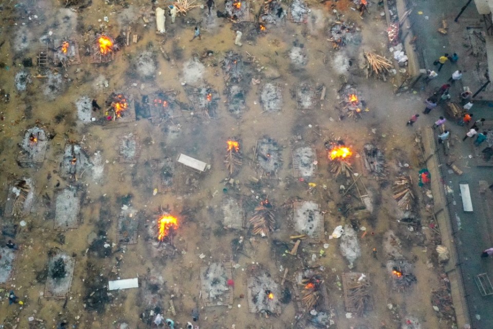 These aerial photos from Agence France Presse show burning pyres of victims who lost their lives due to COVID-19.