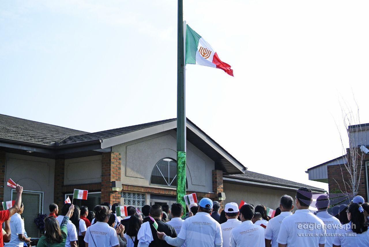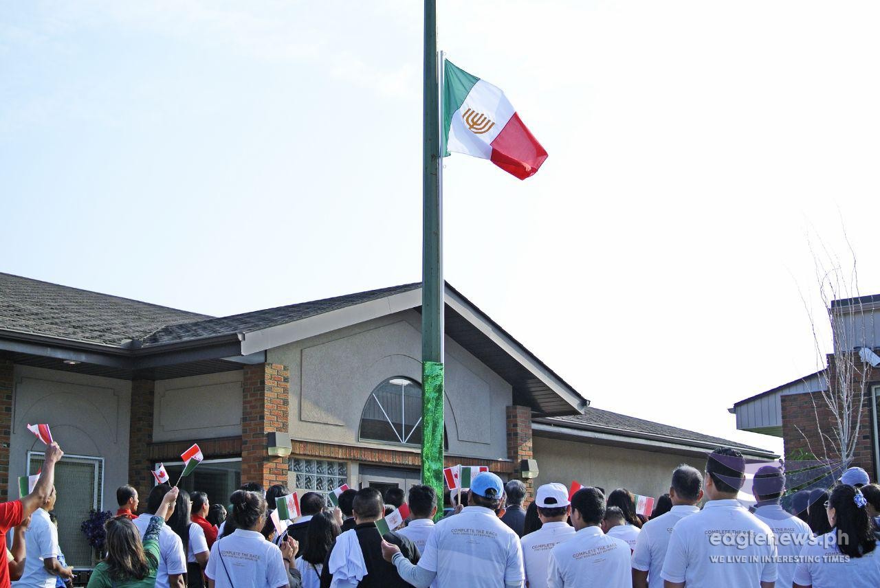 Members of the Iglesia Ni Cristo (Church Of Christ) stand proudly as they witness the raising of the INC flag in Calgary, Alberta, Canada on July 27, 2018, Iglesia Ni Cristo Day. This day is also the 104th anniversary of the Church, and its 50th year since it expanded in the West. (Photos Rafael Lagatic and Allan Lucerio, EBC Canada Bureau, Eagle News Service)The Iglesia Ni Cristo flag, as it waves proudly, during a flag-raising ceremony in Calgary, Alberta, Canada to mark the Iglesia Ni Cristo Day. This day is also the 104th anniversary of the Church, and its 50th year since it expanded in the West. (Photo by EBC Canada Bureau, Eagle News Service)