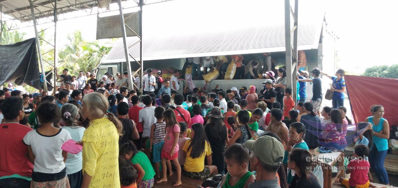 The Iglesia Ni Cristo (Church Of Christ) starts its “Lingap sa Mamamayan” activities in the areas affected by the successive quakes in Mindanao. In this photo, INC members and volunteers start distributing goodwill bags on Saturday, Nov. 2, to those affected by the quake in Magsaysay town in Davao del Sur, one of the areas in Mindanao severely affected by the successive quakes (Photo by Mark Terante, Eagle News Service)