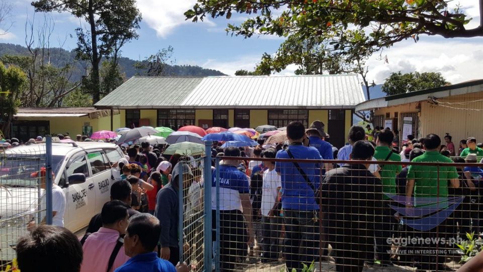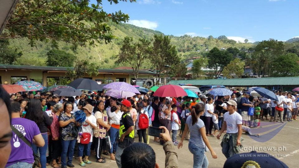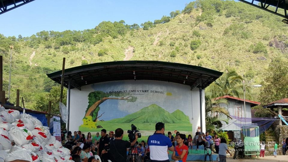 The INC volunteers are currently giving out relief bags at the Loacan Elementary School.