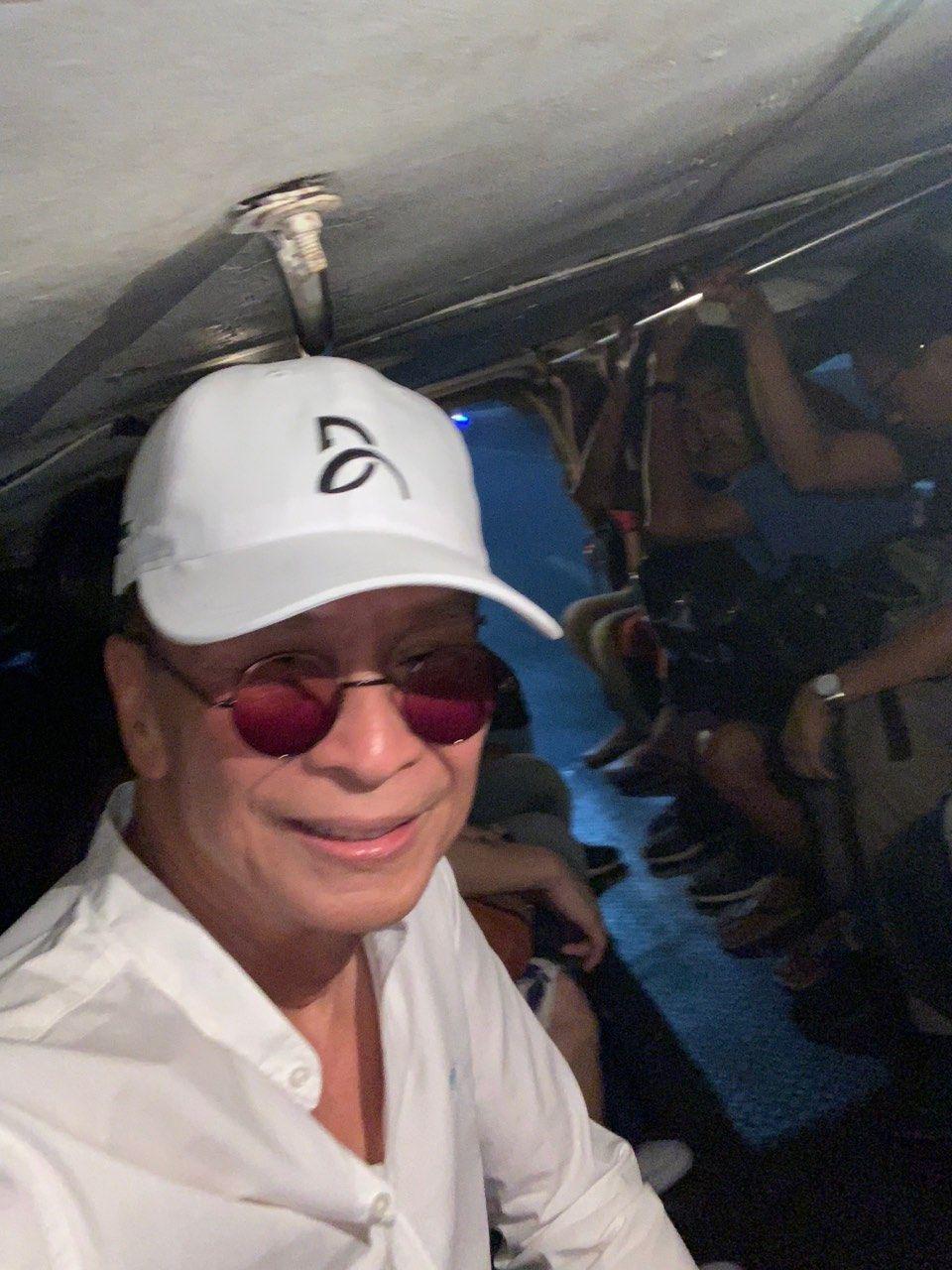 In photos sent thru Viber, Panelo can be seen wearing a white polo and matching white cap, as he rode a jeepney. The other passengers sitting inside can also be seen in one of the photos, apparently a selfie shot.