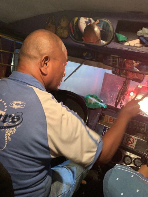 In one photo, he also took a shot of the driver of the jeepney he was riding in. Panelo started sending his “commute challenge” photos at 5:26 a.m.