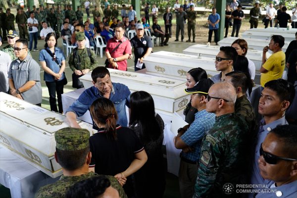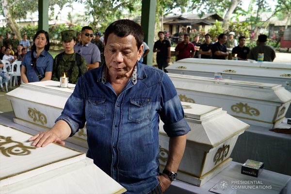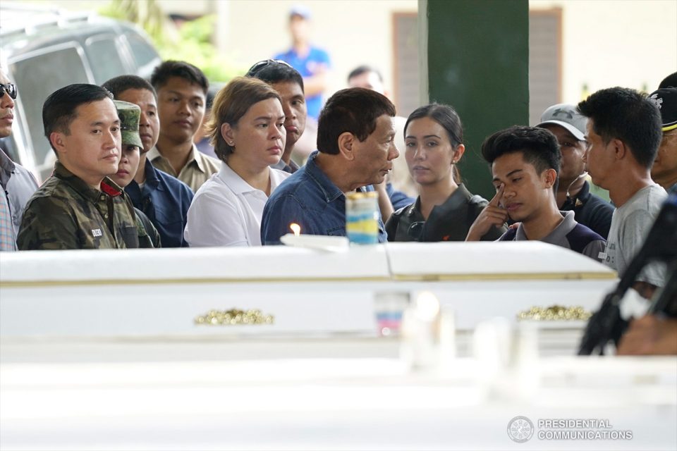 President Rodrigo Duterte offers his condolences to the families of the victims who died during the twin bombings at the Cathedral of Our Lady of Mount Carmel in Jolo, Sulu as he visited Camp Teodulfo Bautista in Jolo on January 28, 2019. KING RODRIGUEZ/PRESIDENTIAL PHOTOPresident Rodrigo Roa Duterte commiserates with the relatives of one of the victims who died during the twin bombings at the Cathedral of Our Lady of Mount Carmel in Jolo, Sulu as he visited Camp Teodulfo Bautista in Jolo on January 28, 2019. Joining the President are Former Special Assistant to the President Christopher Lawrence “Bong” Go and Davao City Mayor Sara Duterte-Carpio. KING RODRIGUEZ/PRESIDENTIAL PHOTOPresident Rodrigo Roa Duterte commiserates with the relatives of one of the victims who died during the twin bombings at the Cathedral of Our Lady of Mount Carmel in Jolo, Sulu as he visited Camp Teodulfo Bautista in Jolo on January 28, 2019. KING RODRIGUEZ/PRESIDENTIAL PHOTOPresident Rodrigo Roa Duterte pays his last respects to one of the victims who died during the twin bombings at the Cathedral of Our Lady of Mount Carmel in Jolo, Sulu as he visited Camp Teodulfo Bautista in Jolo on January 28, 2019. KING RODRIGUEZ/PRESIDENTIAL PHOTO