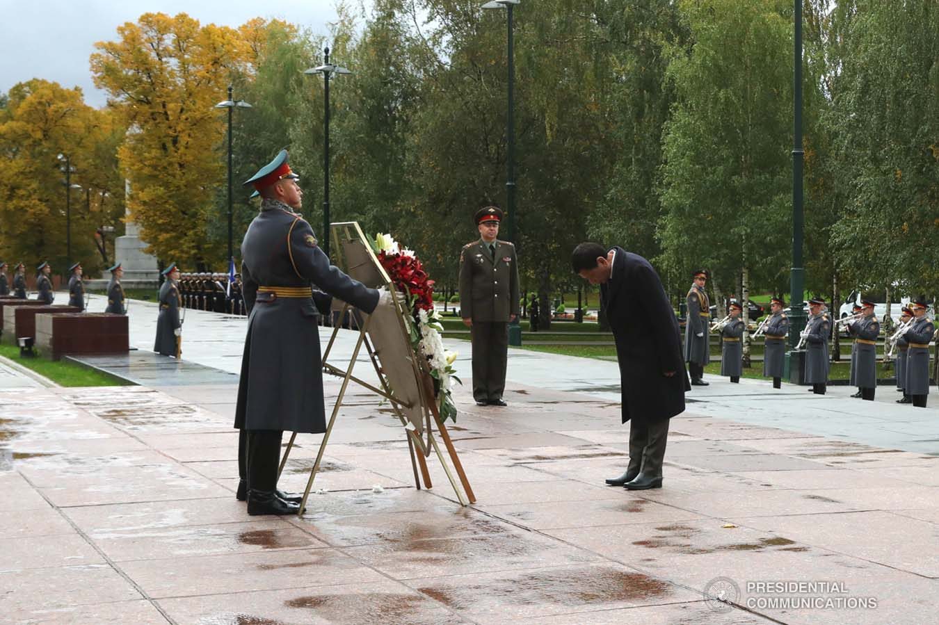 President Rodrigo Duterte honors the fallen Soviet soldiers who fought during World War II as he leads the wreath-laying ceremony at the Tomb of the Unknown Soldier in Moscow, Russian Federation on October 4, 2019. ROBINSON NIÑAL JR./PRESIDENTIAL PHOTOPresident Rodrigo Duterte honors the fallen Soviet soldiers who fought during World War II as he leads the wreath-laying ceremony at the Tomb of the Unknown Soldier in Moscow, Russian Federation on October 4, 2019. ROBINSON NIÑAL JR./PRESIDENTIAL PHOTOPresident Rodrigo Roa Duterte honors the fallen Soviet soldiers who fought during World War II as he leads the wreath-laying ceremony at the Tomb of the Unknown Soldier in Moscow, Russian Federation on October 4, 2019. ROBINSON NIÑAL JR./PRESIDENTIAL PHOTOPresident Rodrigo Roa Duterte honors the fallen Soviet soldiers who fought during World War II as he leads the wreath-laying ceremony at the Tomb of the Unknown Soldier in Moscow, Russian Federation on October 4, 2019. ROBINSON NIÑAL JR./PRESIDENTIAL PHOTO