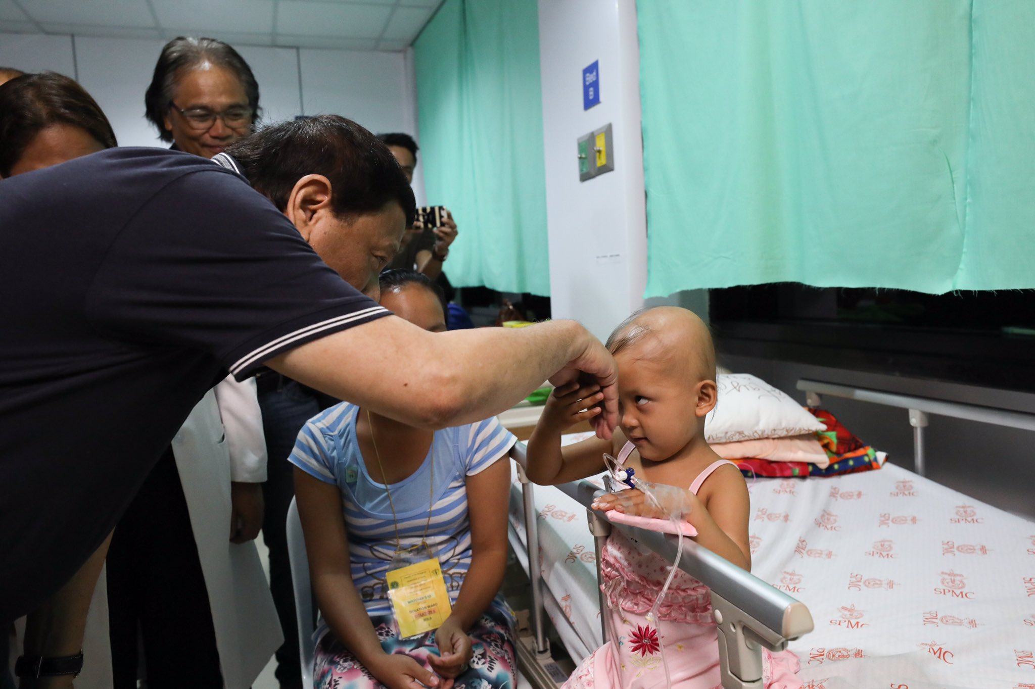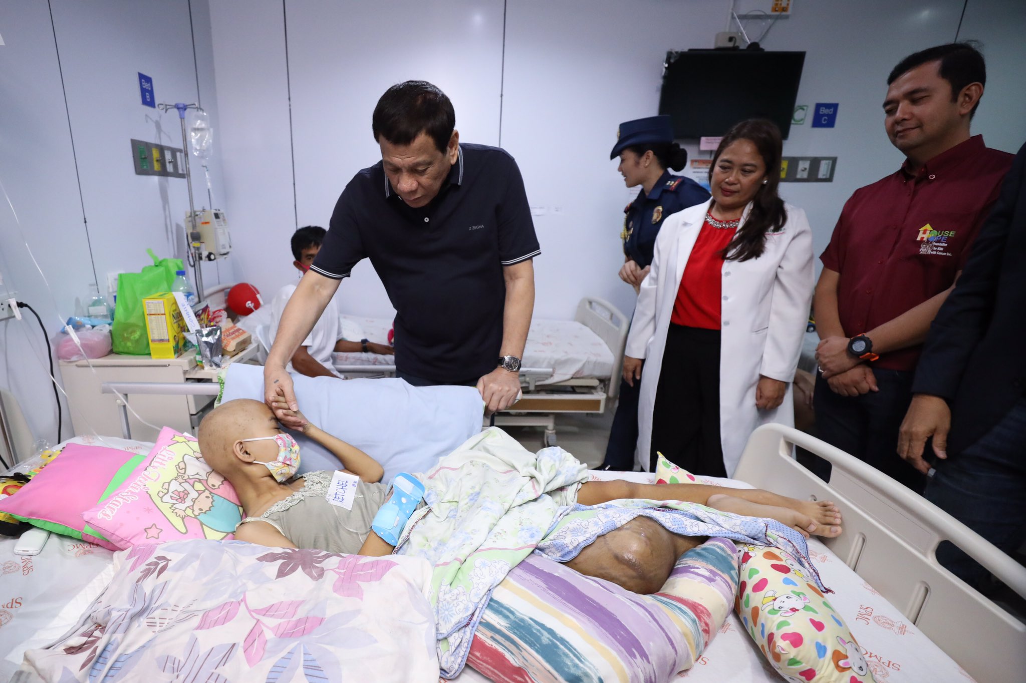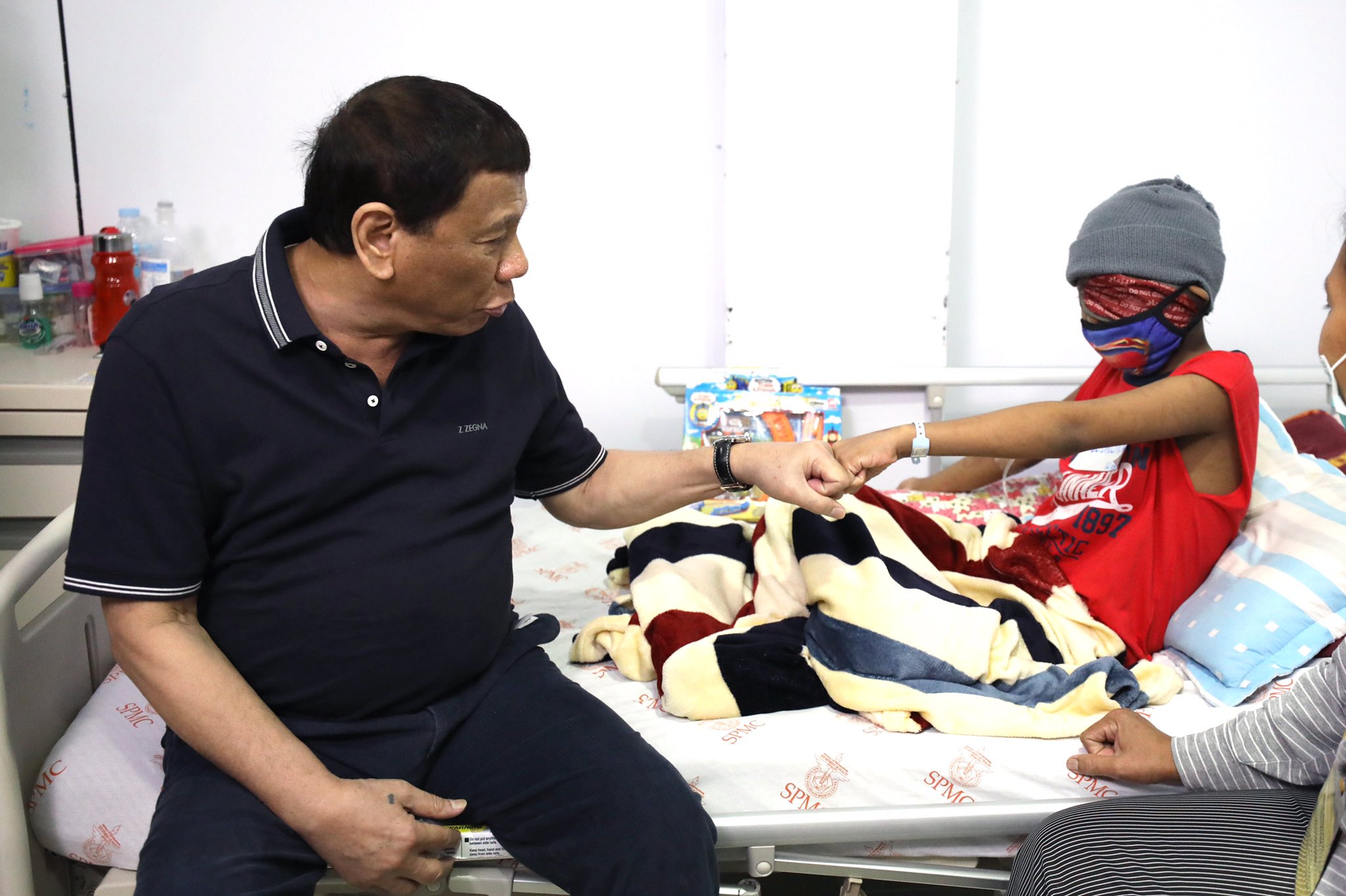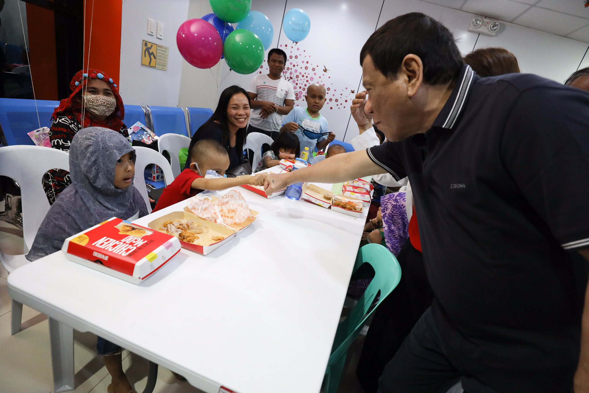 (Eagle News)—-In these pictures released by Malacañang, President Rodrigo Duterte is seen interacting with children afflicted with cancer at the Southern Philippines Medical Center Cancer Institute Children’s Unit in Davao. The visit took place on Sunday, Dec. 23.