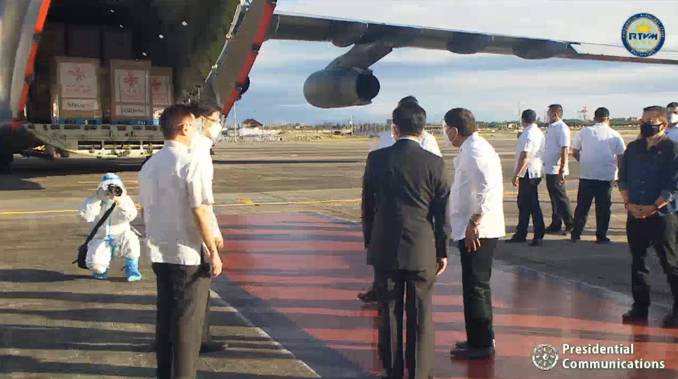 (Eagle News) — President Rodrigo Duterte led Philippine officials in welcoming the arrival of the 600,000 doses of Sinovac vaccines donated by China to the country.